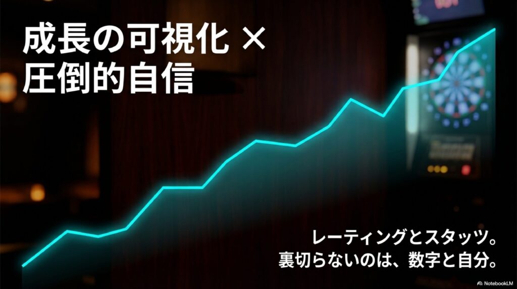 でも、そこでもやっぱりダーツって最高なんですよ。自分の成長が、レーティング(Rt.)やスタッツという「数字」で見える。これ、めちゃくちゃモチベになるんです。