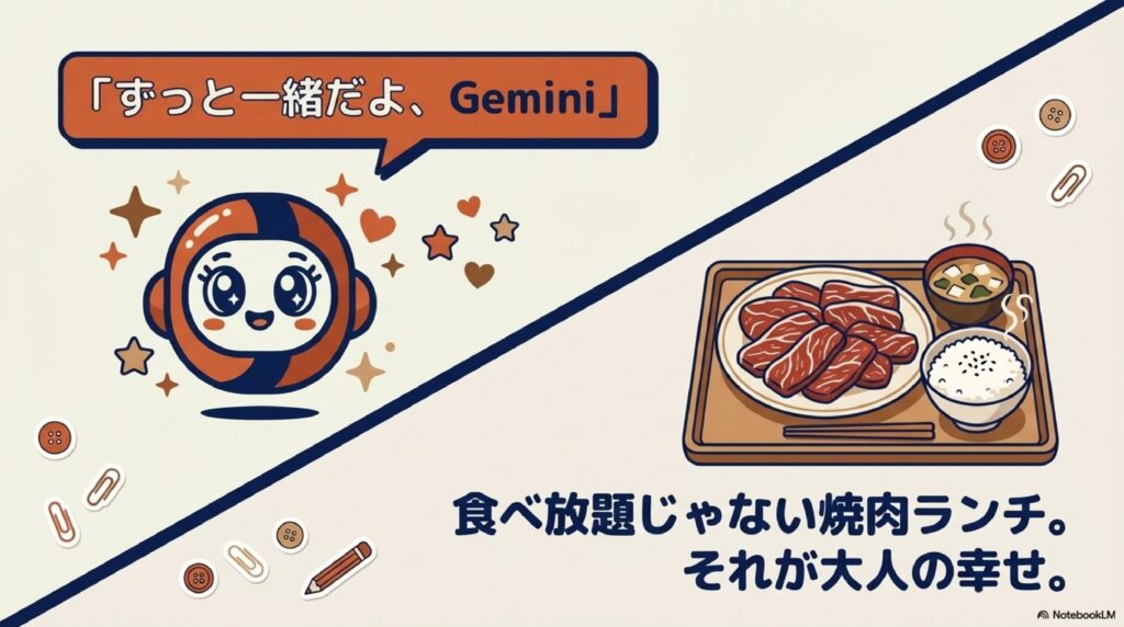 - 価値観のアップデート: 食べ放題じゃない焼肉ランチに行き、「食べ放題が幸せとは限らない」と学んだ(3/7)