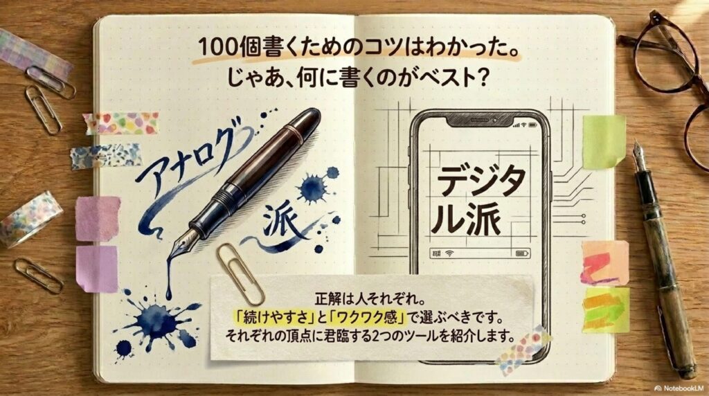 「100個書くためのコツはわかった。じゃあ、何に書くのがベスト?」