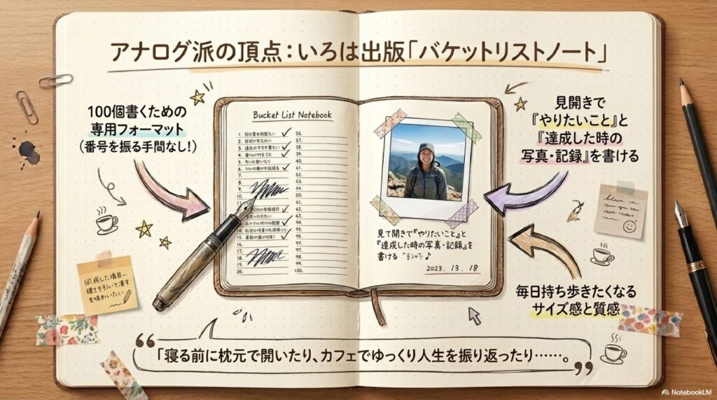 アナログ派向け:書く達成感を味わえる「バケットリストノート」