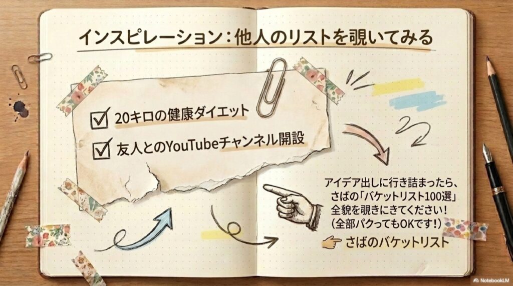 👉 [リンク:【バケットリスト例】さばのバケットリスト100選を全公開!]