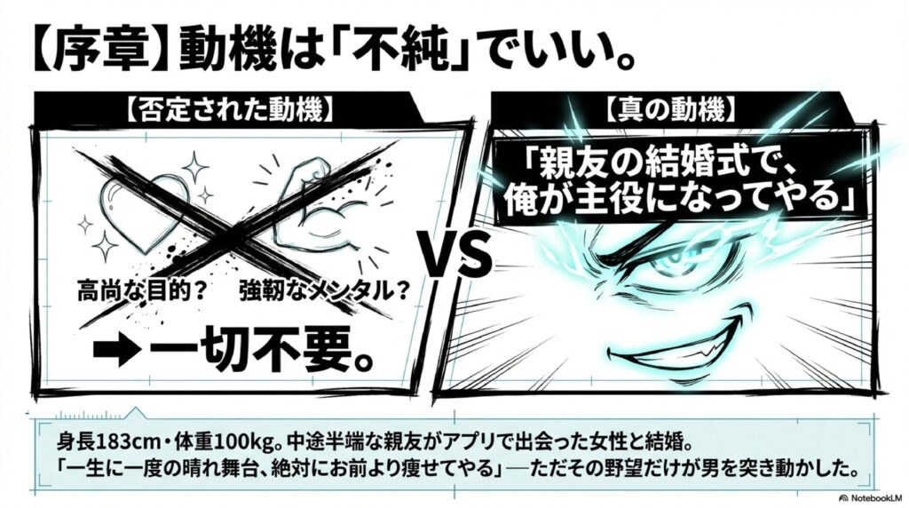 これが、モチベーションでした。ただの“口だけの友達をイジる”ために本気で痩せる男。