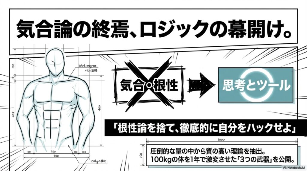 僕は「圧倒的な量の中から、質の高い理論を抽出する」のが大好きな人間です。 今回のダイエットも、根性論は一切捨てました。代わりに、徹底的にロジカルに自分をハックするための「3つの武器」を揃えました。