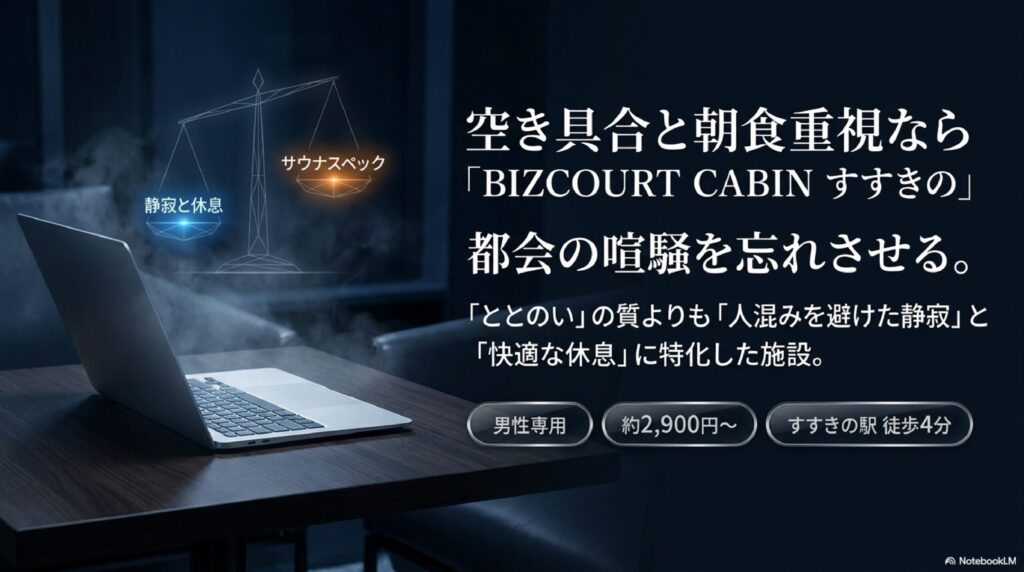 一泊朝食付きで約3,685円〜という価格設定は、現在のサウナバブルにおいて破格。ニコーリフレの行列に疲れたソロサウナーや、清潔感を求めるカップルは、迷わずここを予約してください。