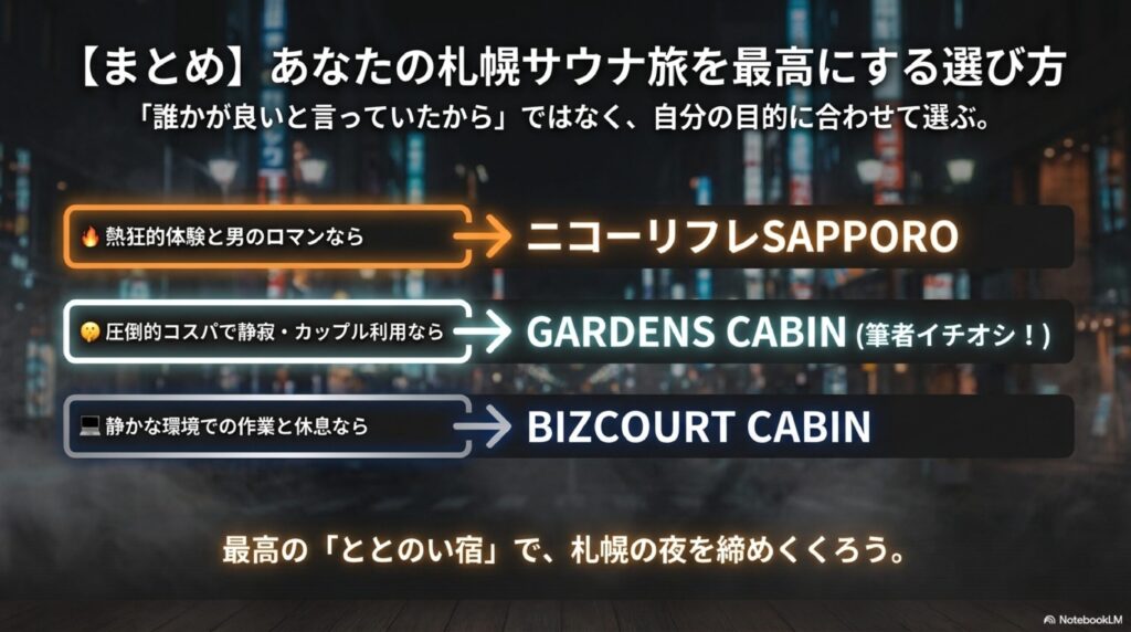 【まとめ】あなたの札幌サウナ旅を最高にする選び方