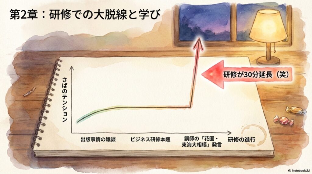一方のさばは、会社で受けた「考える技術・書く技術」というビジネス研修でのエピソードを披露。 研修の本題に入る前、講師の山崎さんによる「出版事情と印税のリアル(紙は10%、電子書籍は約26%など)」という生々しい雑談からスタートしたそうです。